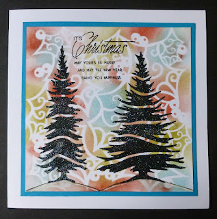Hi Jennifer, what a gorgeous card, I love the stencilled background with the pretty colours, and those trees are wonderful with all that sparkle, it's a beautiful design. Hope all is well and that you've had a good weekend, Kate x