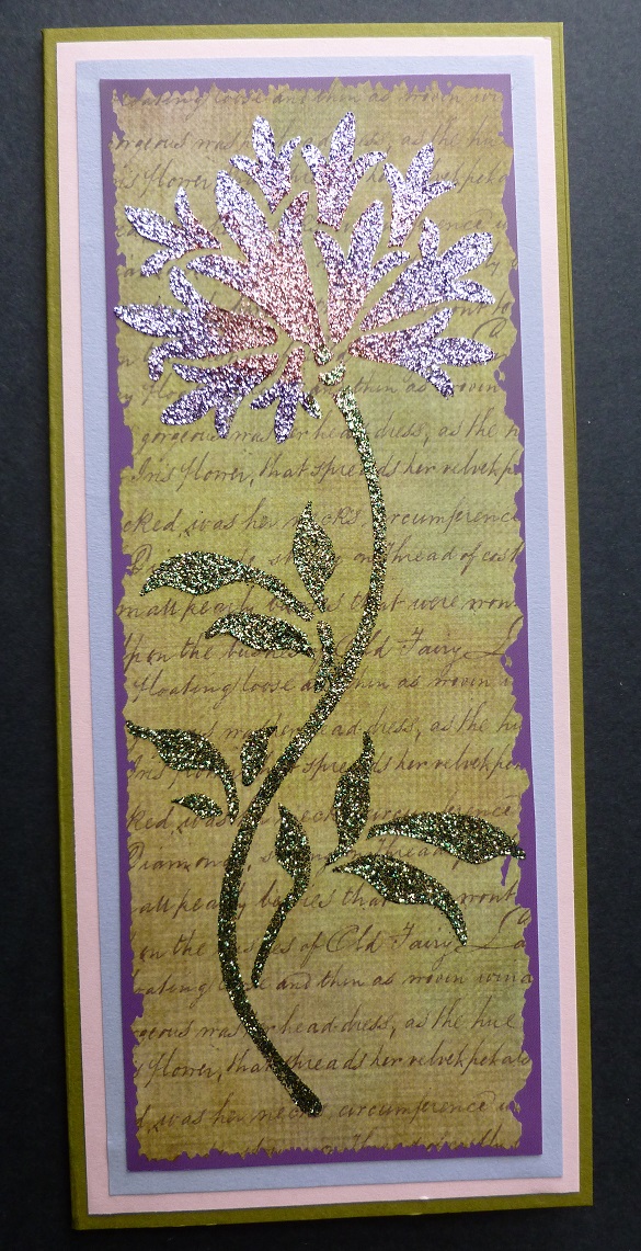 Colour the card with the Starlight paints and then matt onto the black shiny card.
