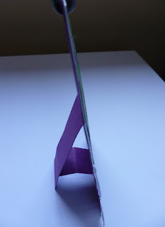 Cut a large tag shape from the deep lavender card. Cut a smaller tag from white card. Die-cut the Lattice Flourish edge from white card, then glue to the back of the white tag. Glue this to the larger lavender tag, so the die-cut shape protrudes on the left-hand side of the tag.